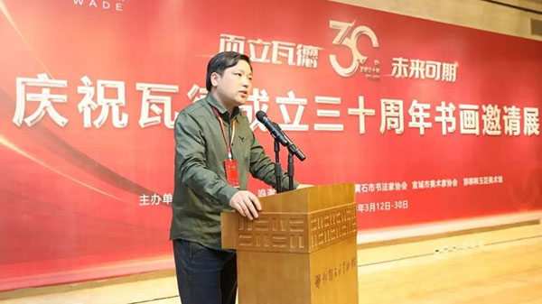 瓦德集團董事長謝富強向與會的各路藝術(shù)家及賓朋表達了熱情歡迎。向河北邯鄲、湖北黃石、安徽宣城三地文聯(lián)、書協(xié)、美協(xié)和書畫家們的大力支持表達了衷心感謝。尤其對中國知名書畫家,邯鄲市書協(xié)主席,文化名人,著名企業(yè)家韓玉臣先生對瓦德集團慶典活動的鼎力支持表達了深深的敬意和由衷地感謝。在三千年歷史的趙國都城邯鄲,能有瓦德集團如此注重文化藝術(shù)的實屬難得,能將深厚的中國文化的脈絡(luò)注入到自己的企業(yè)產(chǎn)品中非常難得。