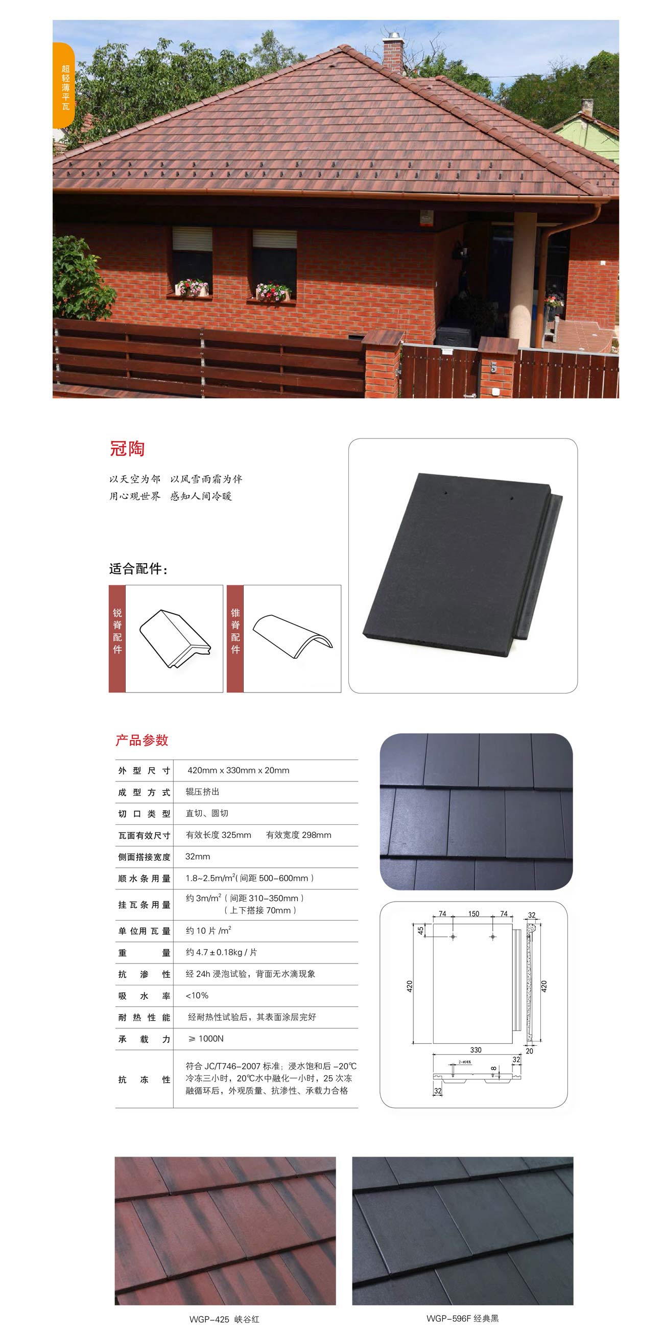 當前位置:網站首頁>>產品介紹>>瓦德彩色混凝土瓦>>冠系列輕薄平瓦
